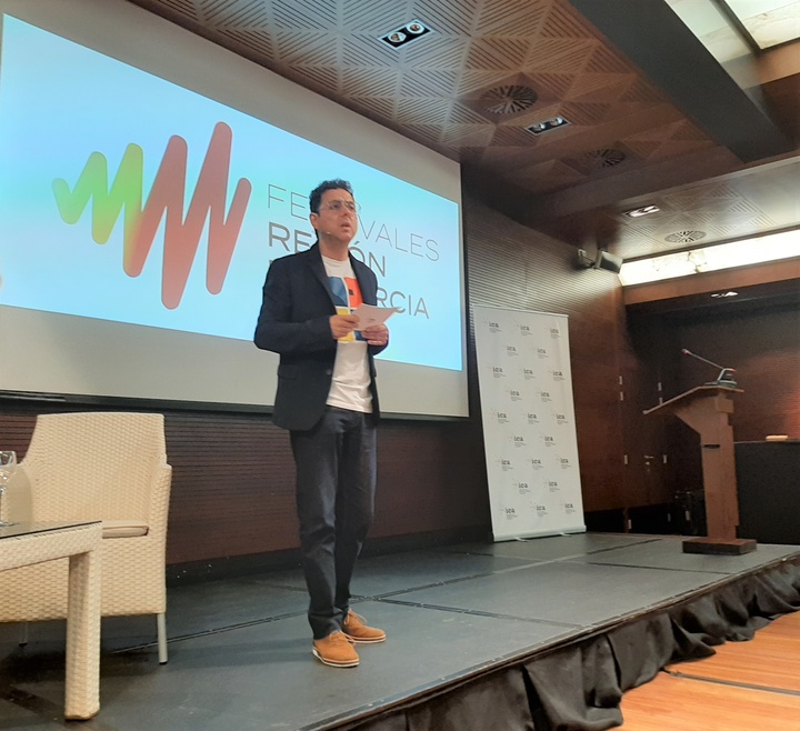 El director general del ICA, Manuel Cebrián, participó hoy en la reunión de la Asociación de Promotores Musicales, en la que se dan cita los 150 empresarios que lideran en España el sector de la música en vivo, con la presentación del panel ‘Festivales Región de Murcia. Más Murcia’, donde mostró la labor del Gobierno regional para la promoción de la cultura y de la música en vivo. Indicó que la marca ‘Festivales Región de Murcia’ cuenta con ayudas directas que este año ya rondan los 900.000 euros y añadió que esta marca es “un distintivo creado por el Gobierno regional para dinamizar el sector y disponer de un recurso cultural y turístico capaz de ofrecer una experiencia única y de calidad al visitante durante todas las épocas del año”.