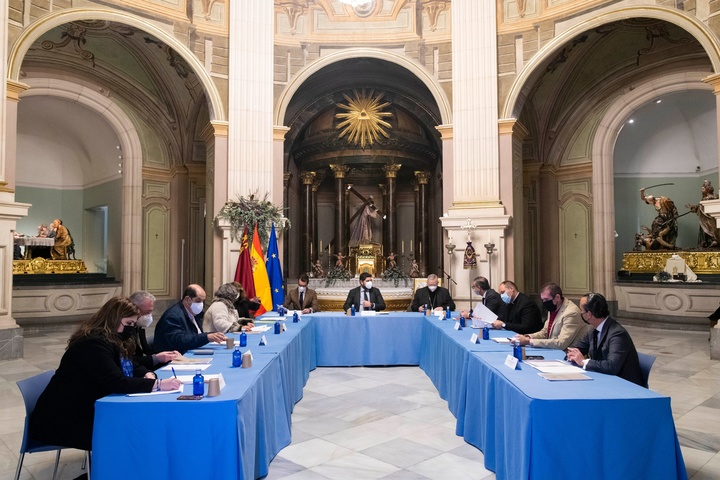 El jefe del Ejecutivo regional, Fernando López Miras, presidió hoy la reunión del Patronato del Museo Salzillo de Murcia, en la que se estableció como objetivo para 2022 la recuperación de sus niveles de visitantes previos a la pandemia, en torno a los 65.000. Además, el Patronato hizo balance de un año en el que la institución ha celebrado el 80 aniversario de su creación en 1941, y que volvió a estar marcado por la adaptación a las restricciones derivadas de la covid-19.